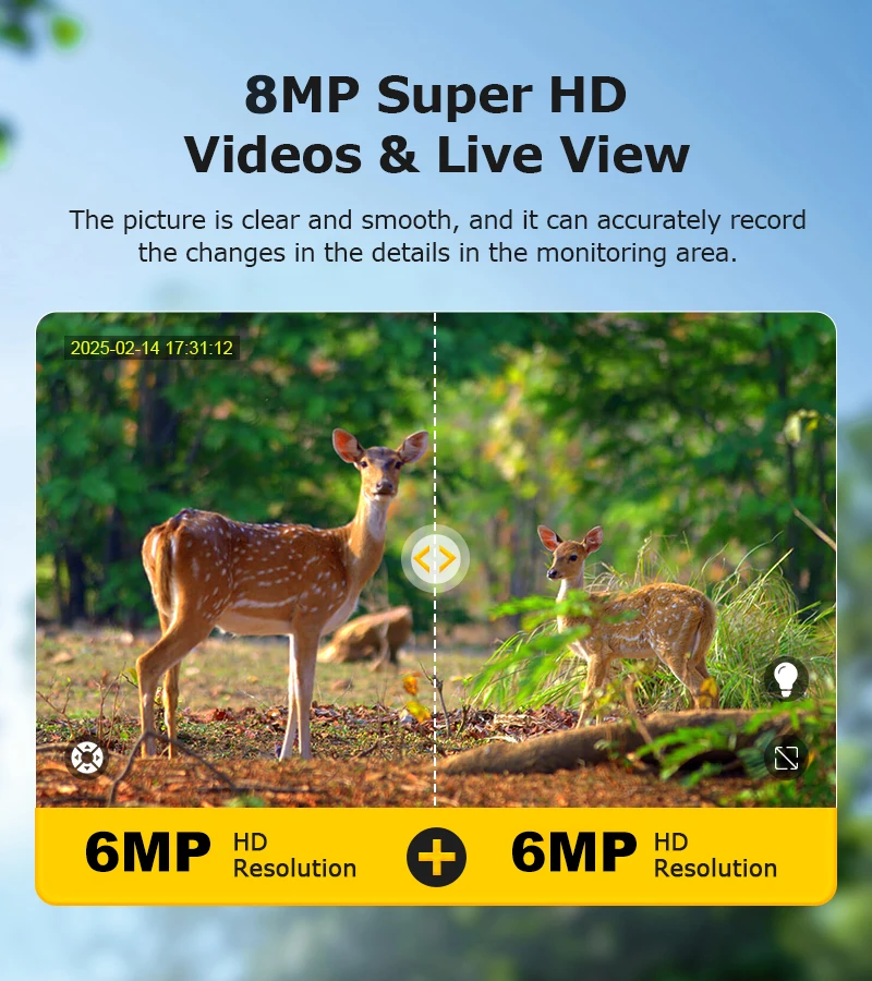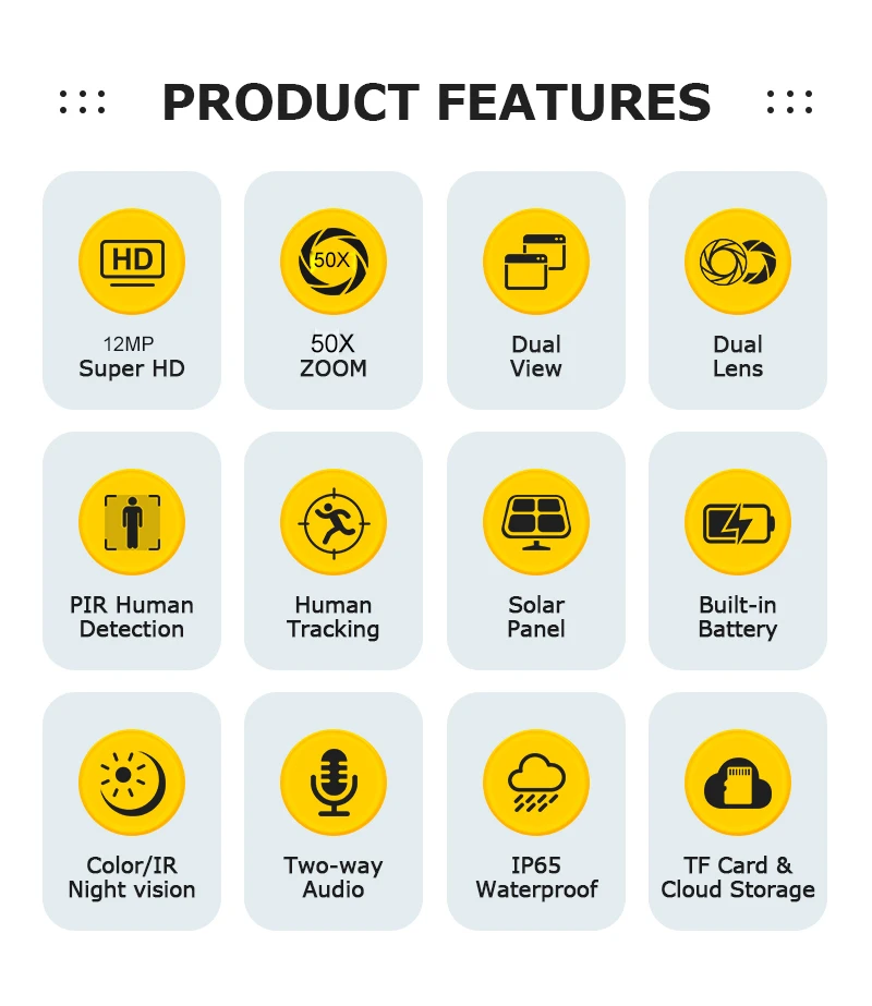 * Solar camera supports 60X optical zoom, allowing you to zoom in/out on the observed object in the app, allowing you to see more details.