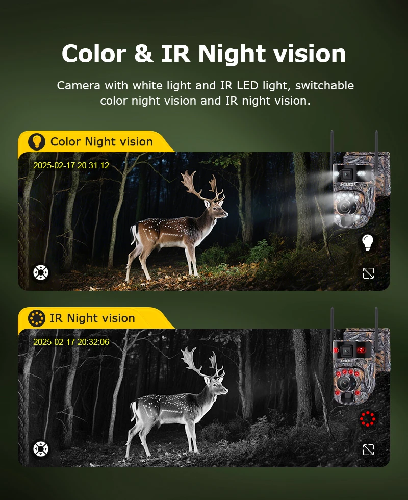 * This security camera has 2 modes of night vison: Color and IR Night Vision.