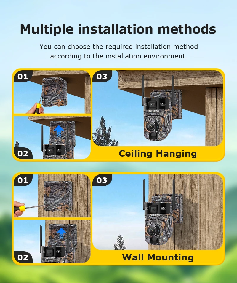 * Connect the camera to the solar panel, and it will getuninterrupted power all day and all night